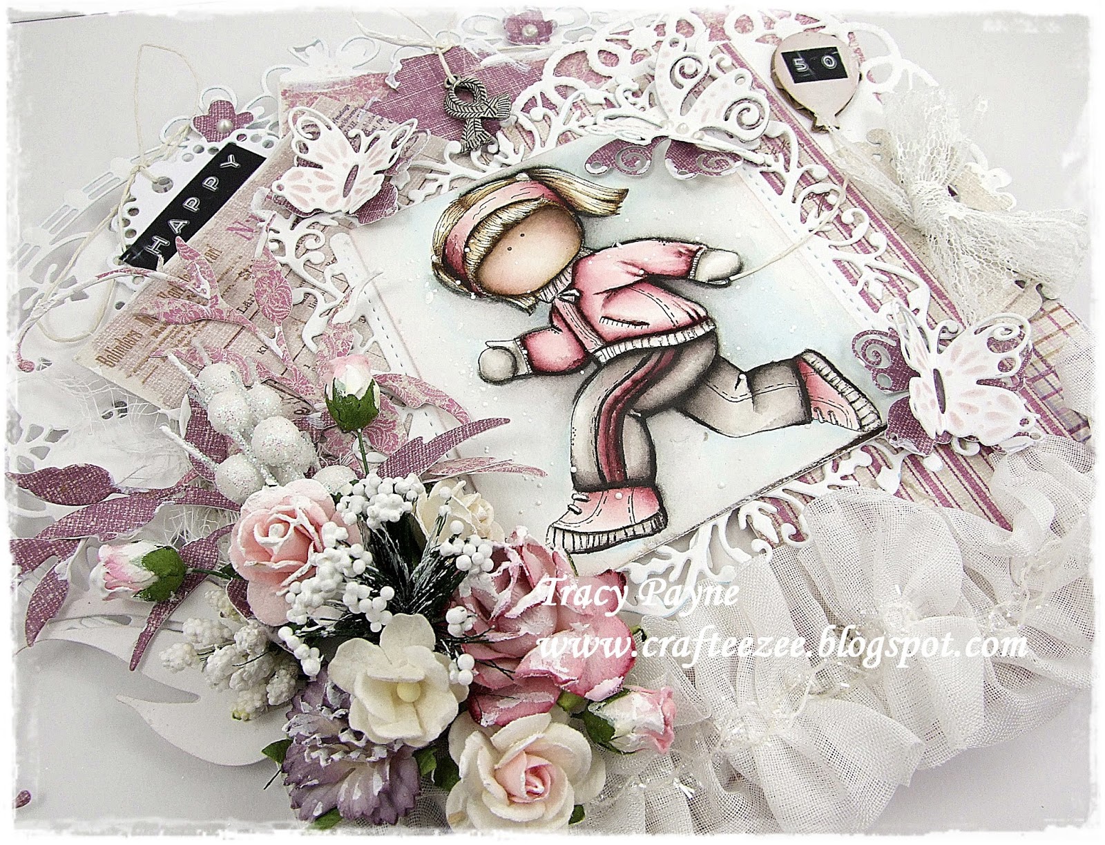 I had to make a birthday card for my niece but she's a plain Jane girl and I find these plain cards difficult but I thought the lollipop card would suit the bill. I placed a prima cupcake in the centre as Claire loves cupcakes so this was actually the perfect card for her :)