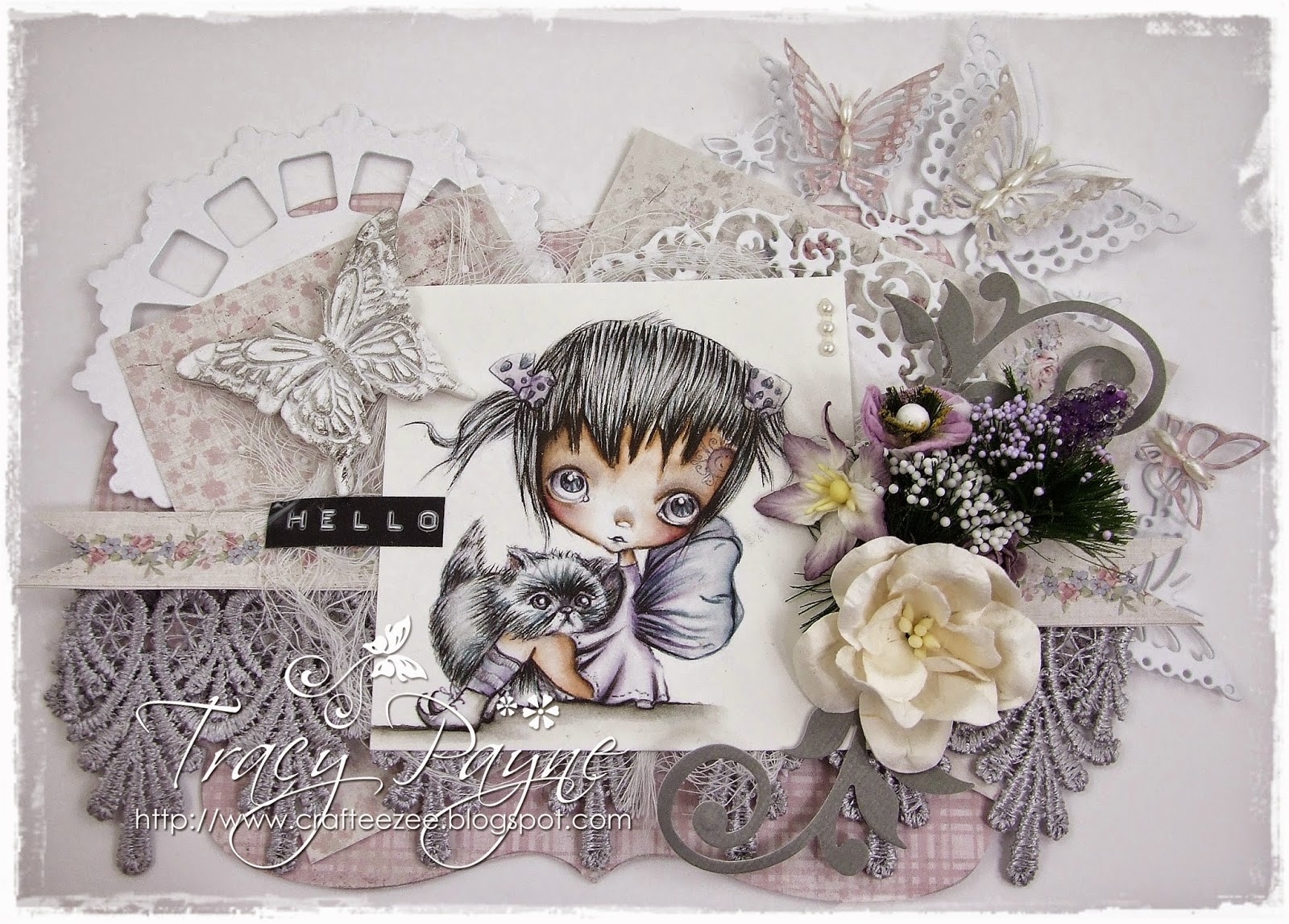 This is stunning Tracy. This is one of my favourite p pinky images and love your colouring. All the layers are beautifully embellished.